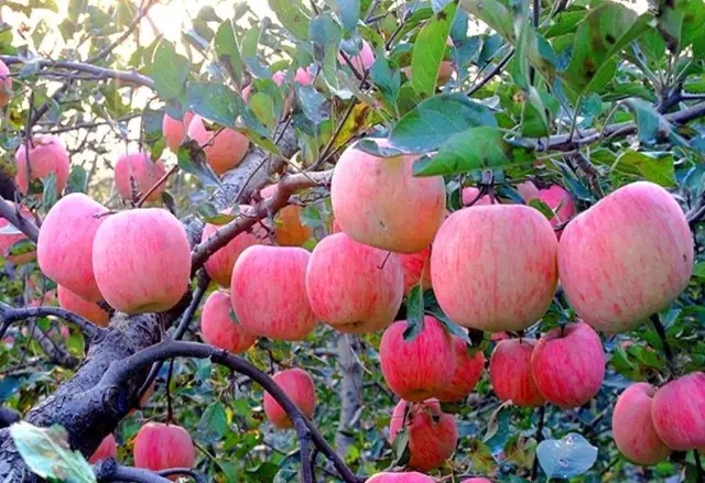 (2)化肥分3~6次施用,第一次在果實(shí)套袋前后(5月下旬),氮磷鉀配合施用,建議施用17-10-18蘋果配方肥;6月中旬以后建議追肥2~5次;前期以氮鉀肥為主,增加鉀肥用量,建議施用16-6-20配方肥;后期以鉀肥為主,配合少量氮肥(氮肥用量根據(jù)果實(shí)大小確定,果實(shí)較大的一定要減少氮肥用量,且增加鈣肥等用量)。干旱區(qū)域建議采用窄溝多溝施肥方法,多雨區(qū)域可放射溝法或撒施。